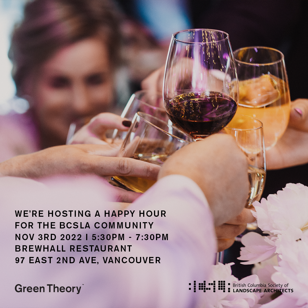 Come join colleagues and friends for the best Happy Hour in the industry. We will gather at the Brewhall, 97 East 2 Avenue Vancouver, BC at 5:30 pm on November 3, 2022. A huge thank you to Joel Franske and the team at Green Theory Design for putting on this fantastic event.